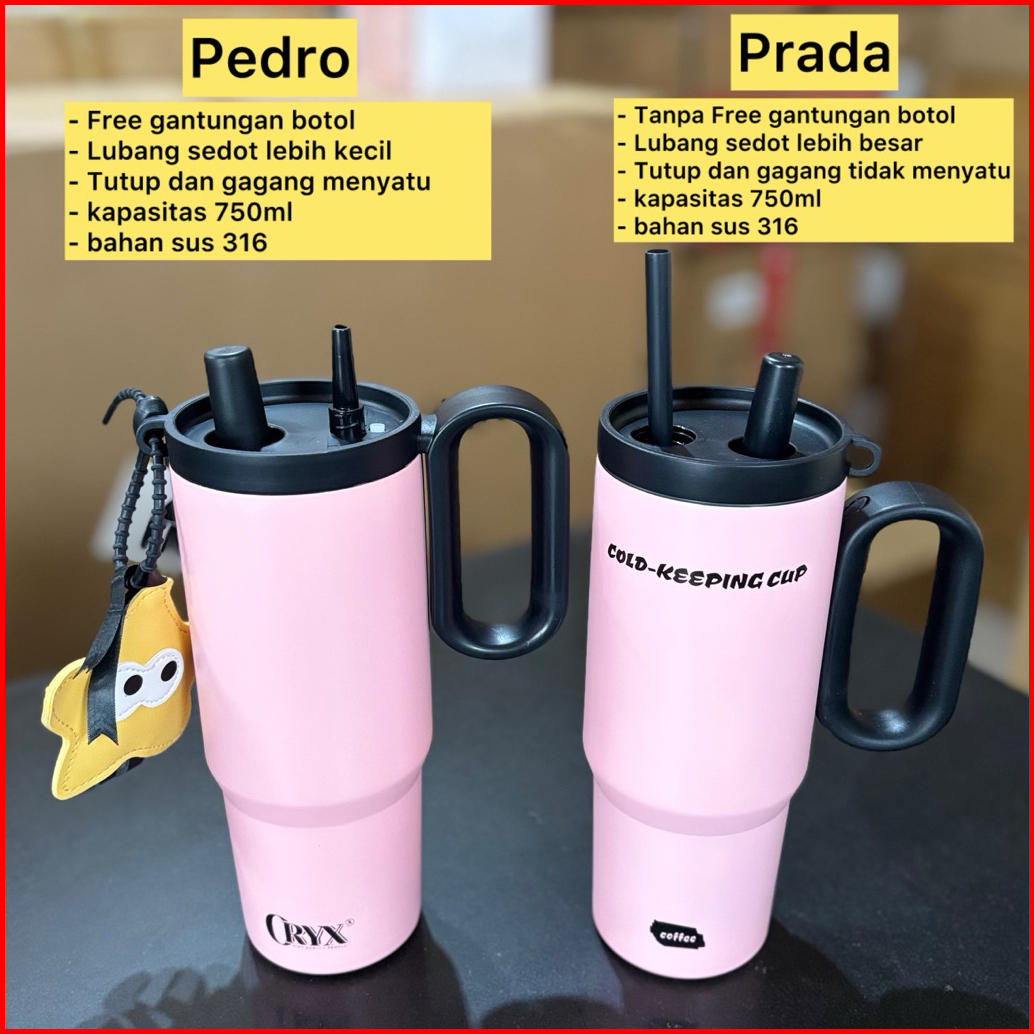 Tumbler Stainless Vacum 750ml Portable Thermos Botol Minum Besar Aesthetic Tumbler Denga Sedotan Tahan Panas Dingin Best