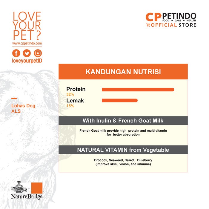 Makanan Anjing Bundling Nature Bridge Lohas Dog Als With Goat Milk 2kg (2pcs) Nature Bridge