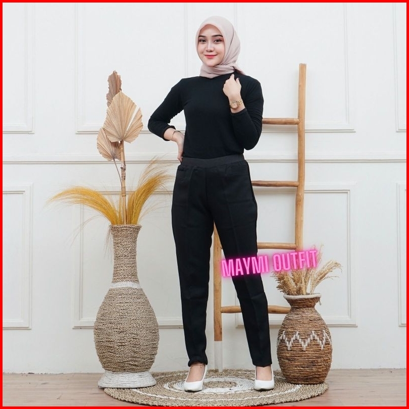 Maymi Outfit Celana Kantor Kerja Pinggang Karet Wanita Jumbo