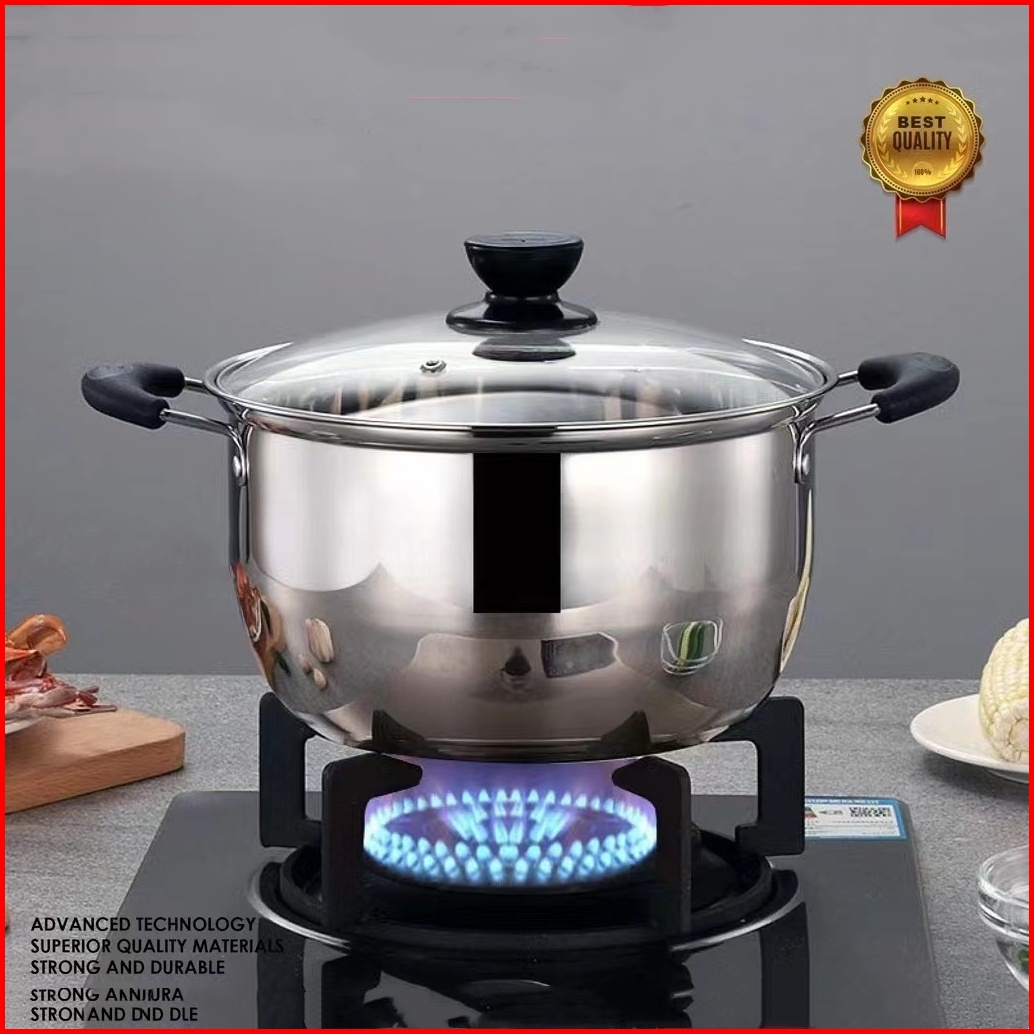 Panci Masak Soup Stainless Steel Tutup Kaca Saucepot