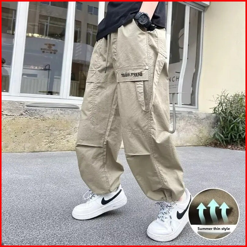 Celana Kargo Ukuran Besar Untuk Anak Laki-laki Musim Semi Musim Gugur 2025 Celana Kasual Kaki Lurus Baru Celana Anak-ana