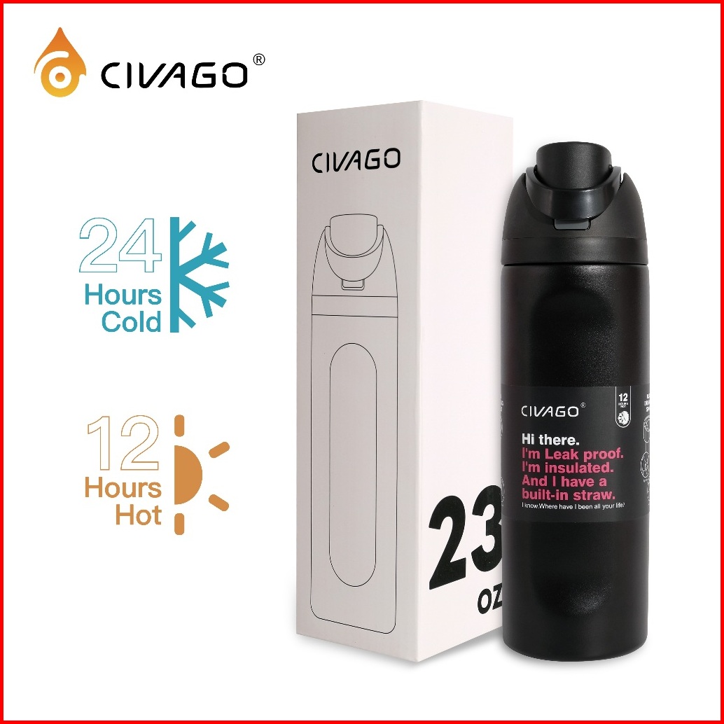 Civago23oz 680mlbotol Minum Stainless Steel Berinsulasi Sedotan Bebas Bpa Kapasitas Besar