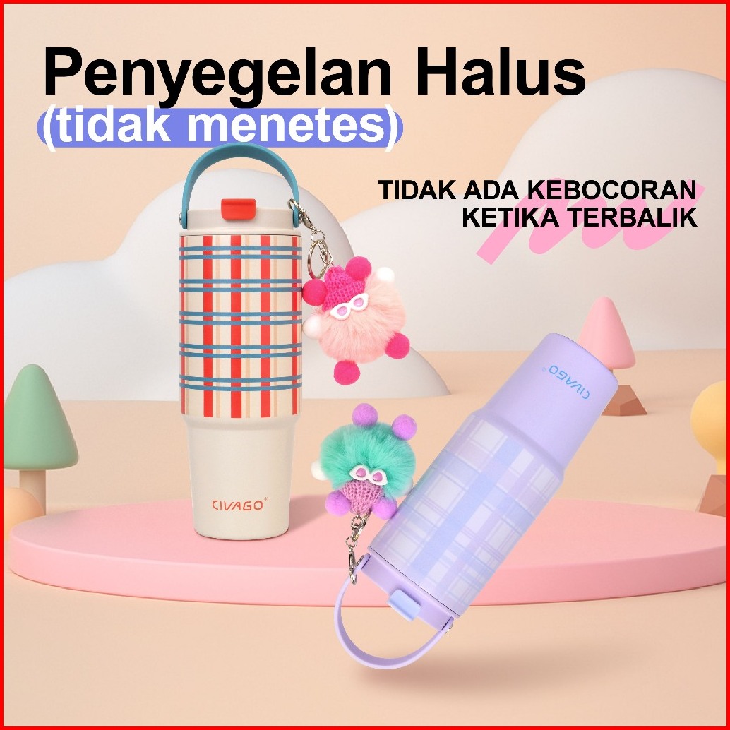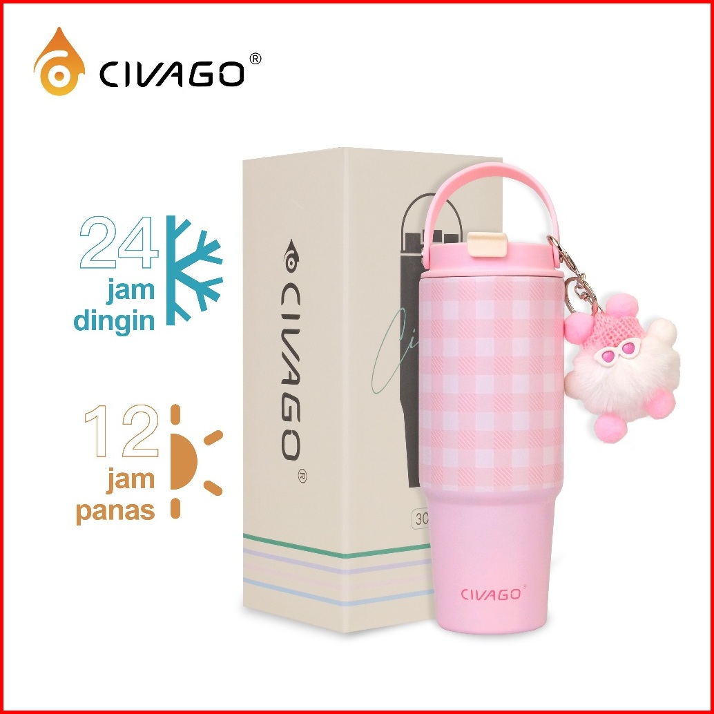 Civago30oz 887mlmug Sedotan Termal Untuk Wanita Mug Stainless Steel Kapasitas Besar Cocok Untuk Mobil Dan Dibawa Saat Be