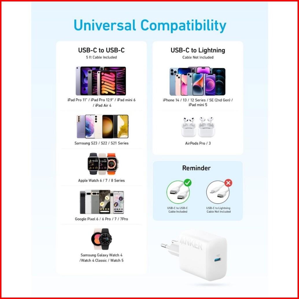 Adaptor Anker Wall Charger Type C 20w Pd Iphone Android Powerport Iii Nano Cube