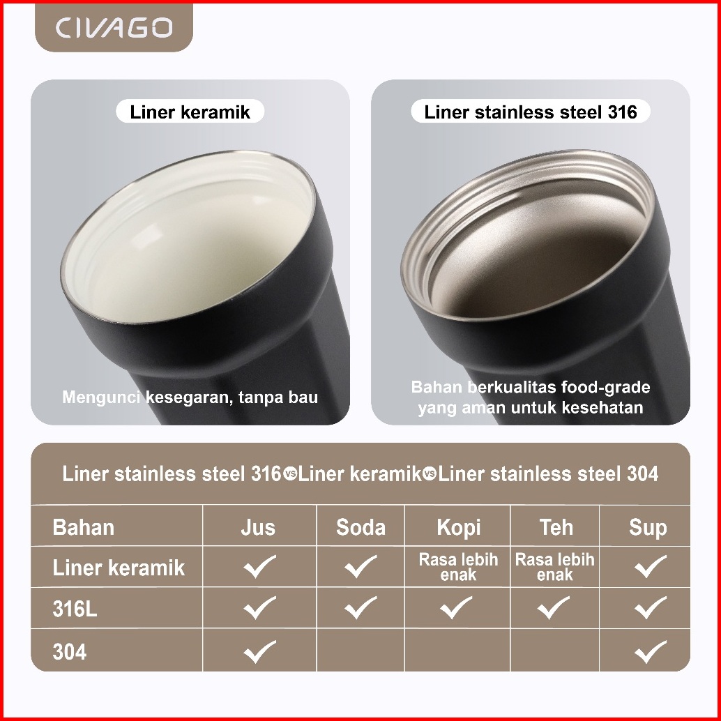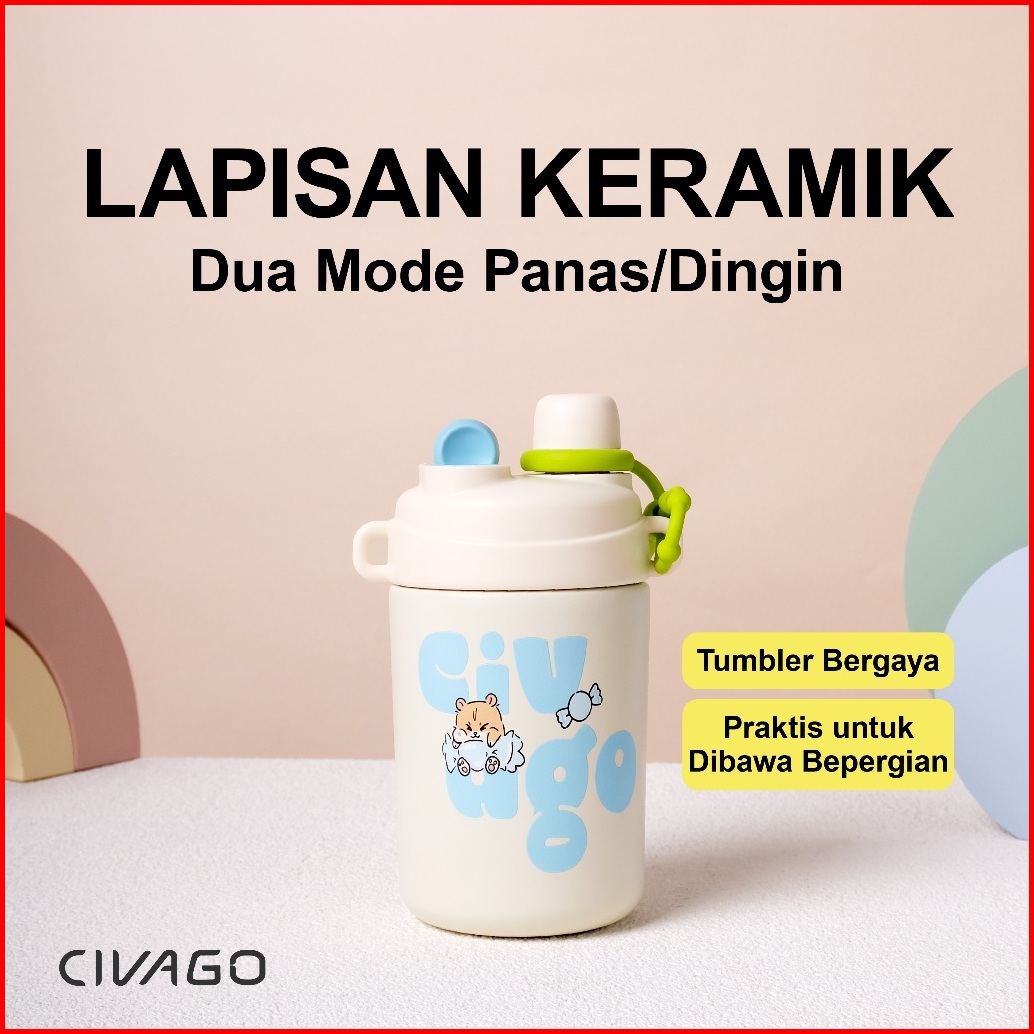 Civago17oz 502mltumbler Berinsulasi Vakum Dengan Sedotan Cangkir Kopi Keramik Berkapasitas Besar Untuk Pelajar Dan Anak-