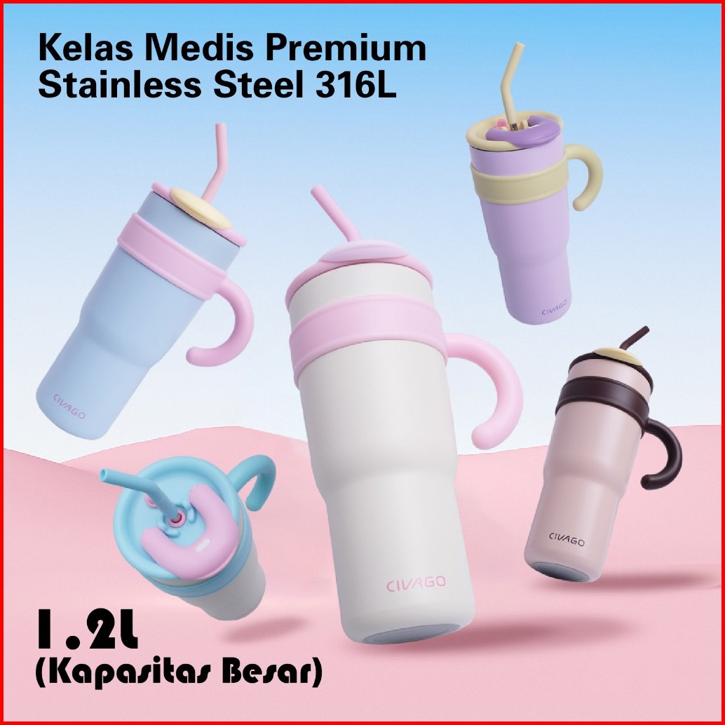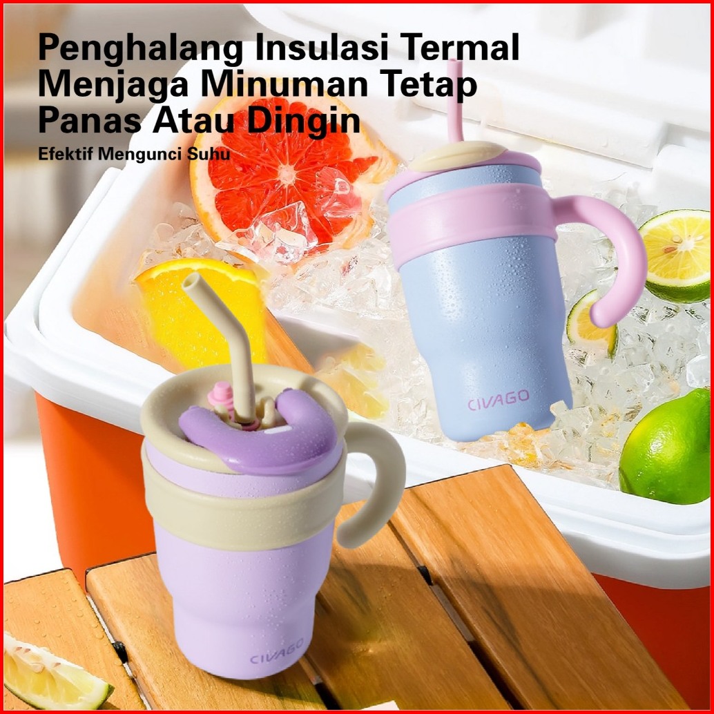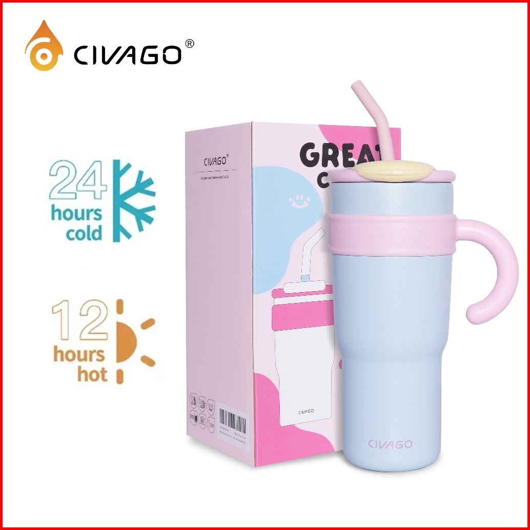 Civago23oz 40oztumbler Terisolasi Dengan Sedotan Kapasitas Besar 316l Stainless Steel Penahan Es Cangkir Dingin