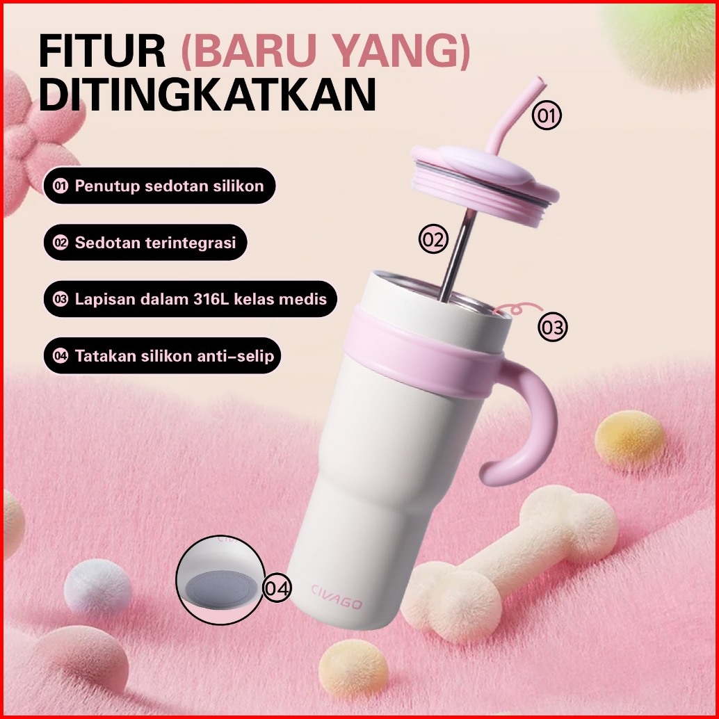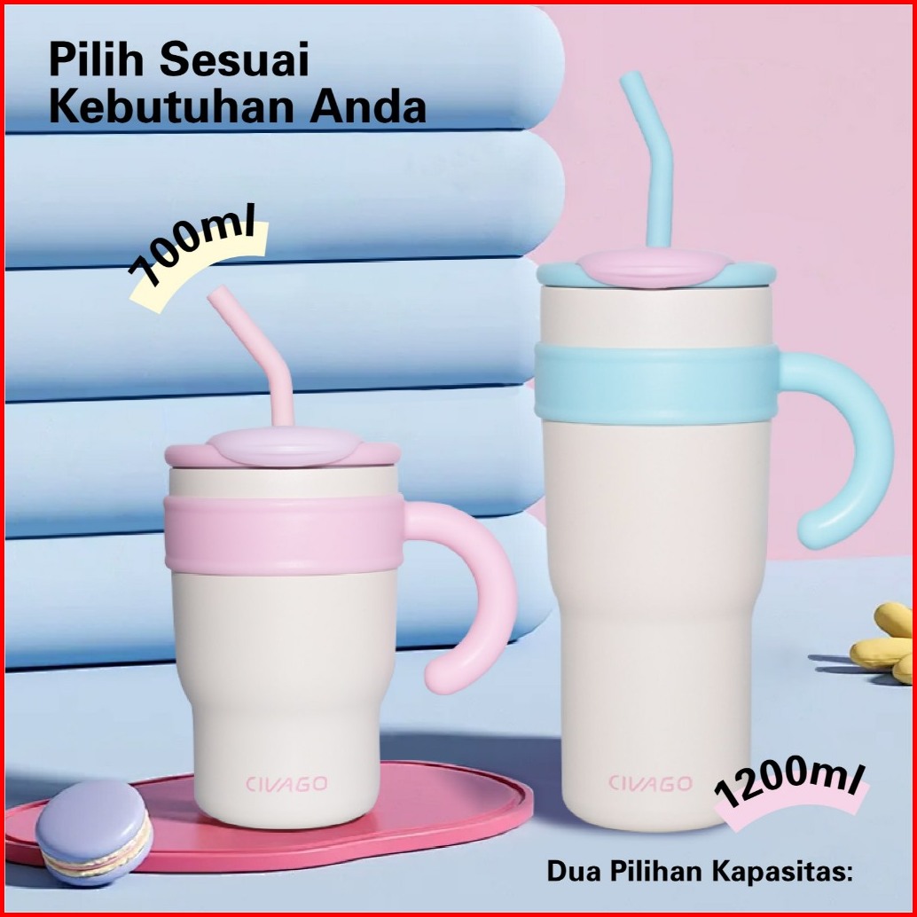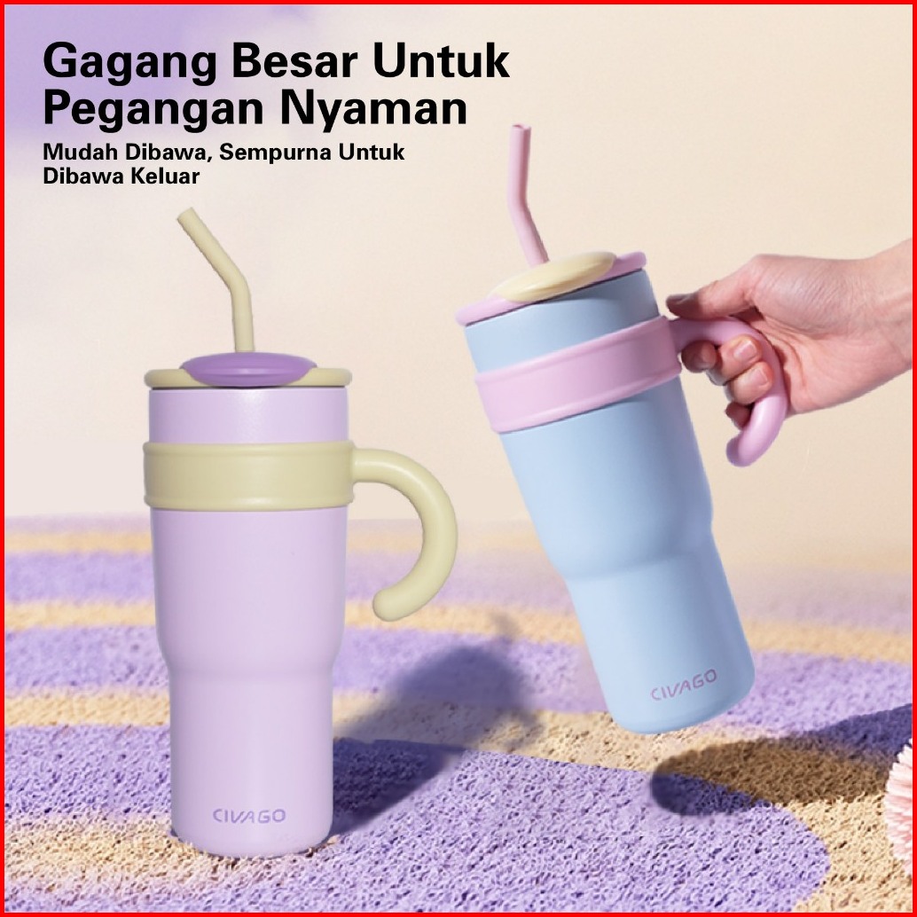Civago23oz 40oztumbler Terisolasi Dengan Sedotan Kapasitas Besar 316l Stainless Steel Penahan Es Cangkir Dingin
