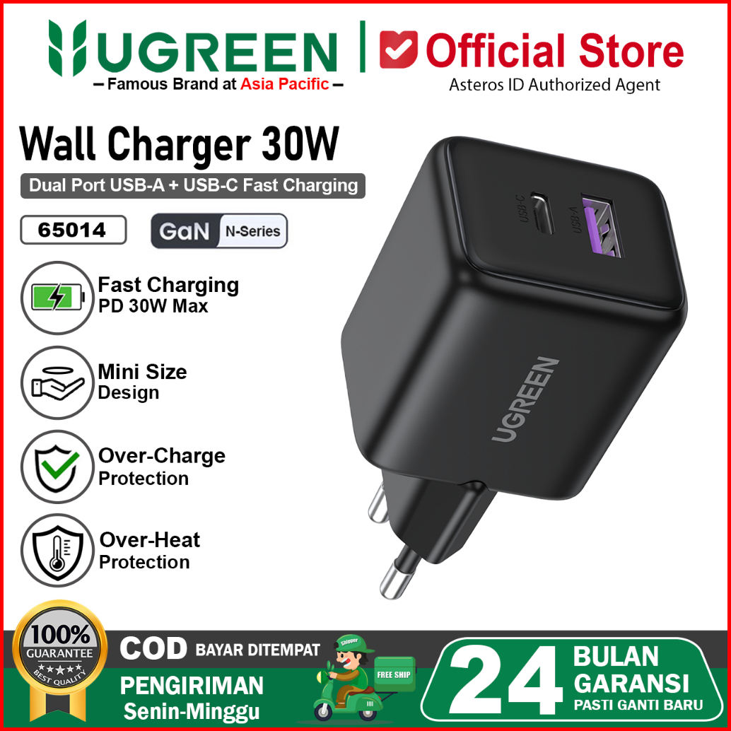 Ugreen Kepala Charger Dual Port Usb A Usb Type C Fast Charging 20w 30w 45w