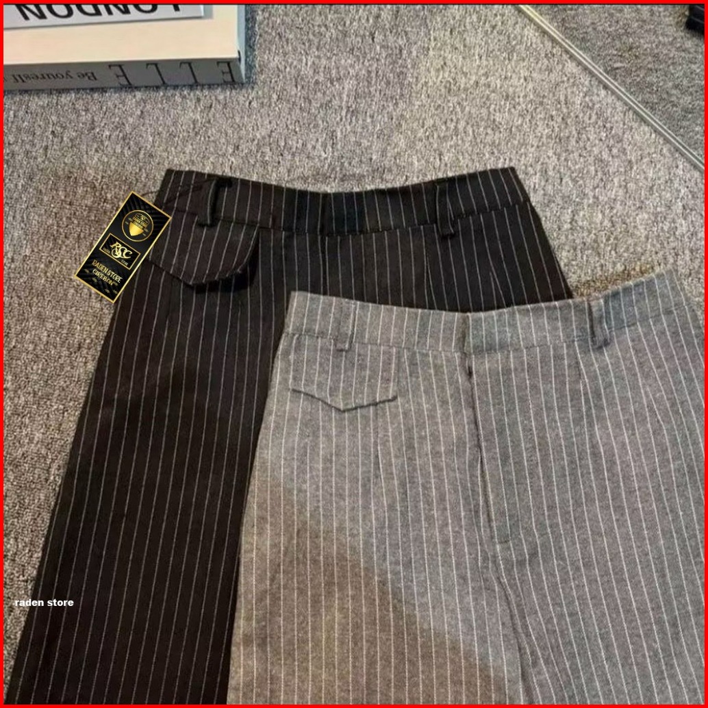 Raden Oro Pants Stripe - Celana Wanita Highwaist Loose Pants - Kulot Panjang Stripe Shirt