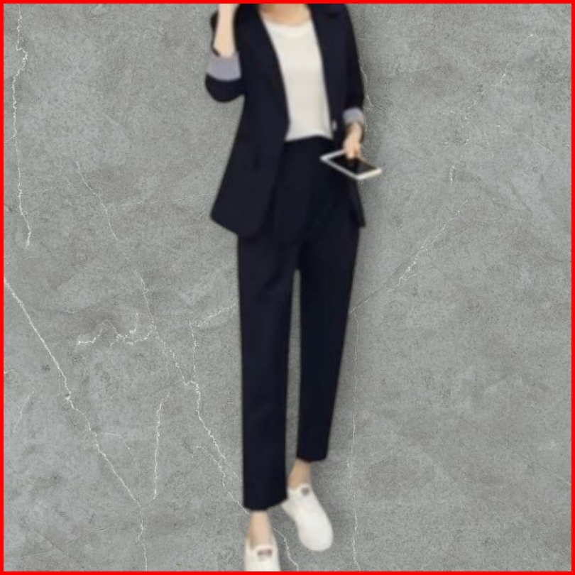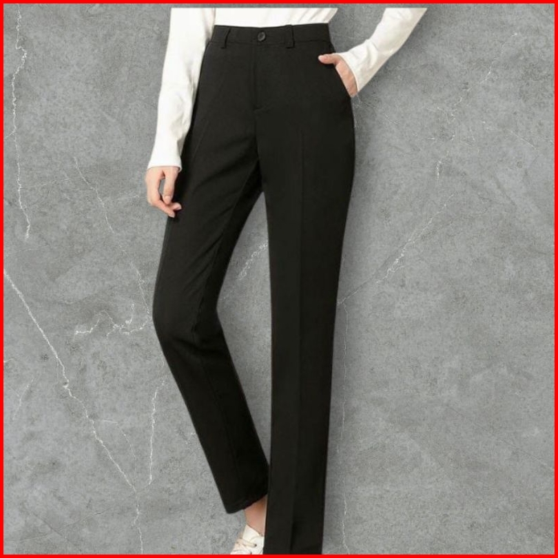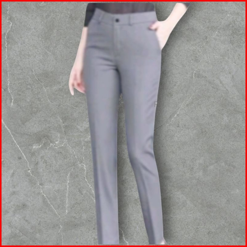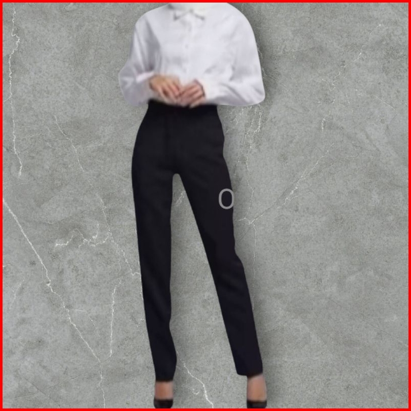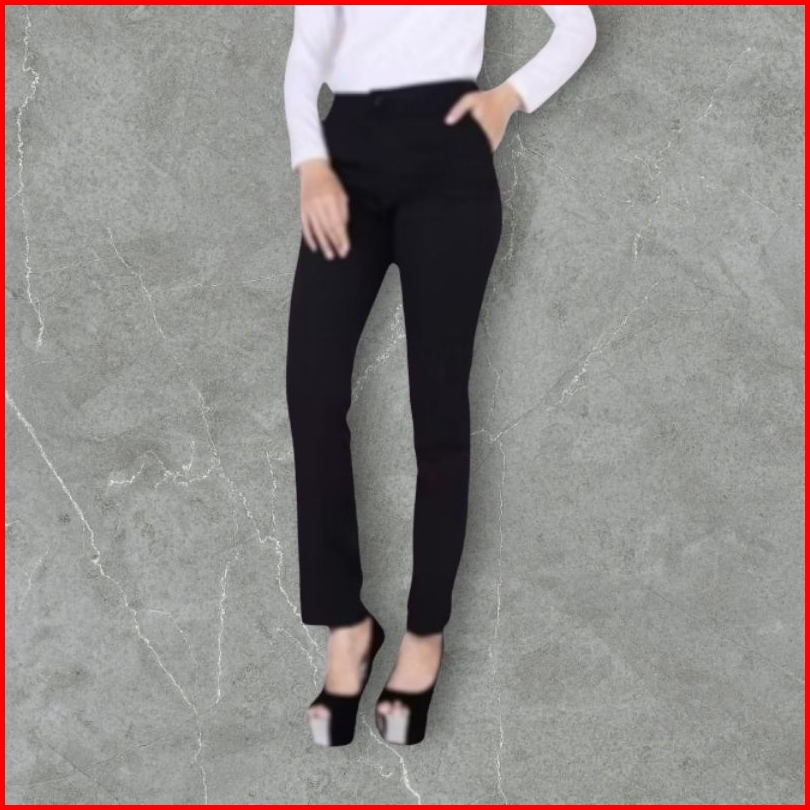 Celana Kerja Formal Kantor Hitam Pinggang Kancing Resleting Wanita