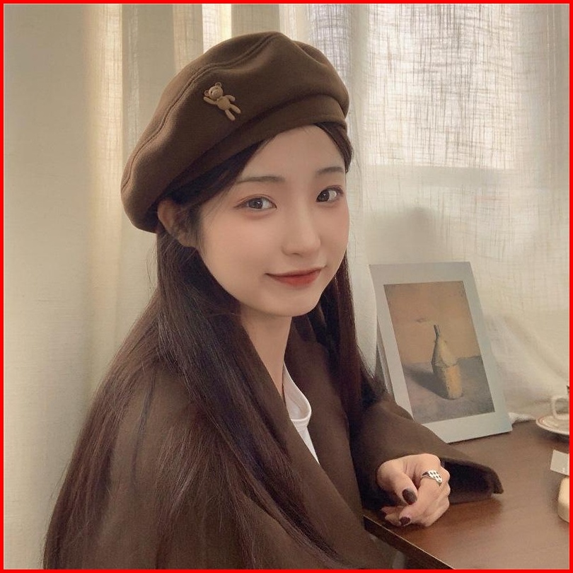 Littlecrab Topi Baret Korea Seniman Painter Motif Teddy Bear Simple Cute Aesthetic Cap Topi High Quality Bahan Lembut Re