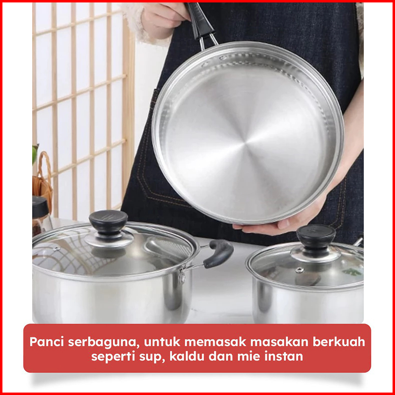 Panci Stainless Steel 3 Set Panci Dan Wajan Stainless Steel Panci Sup 20cm Panci Mie 16cm Wajan 24cm
