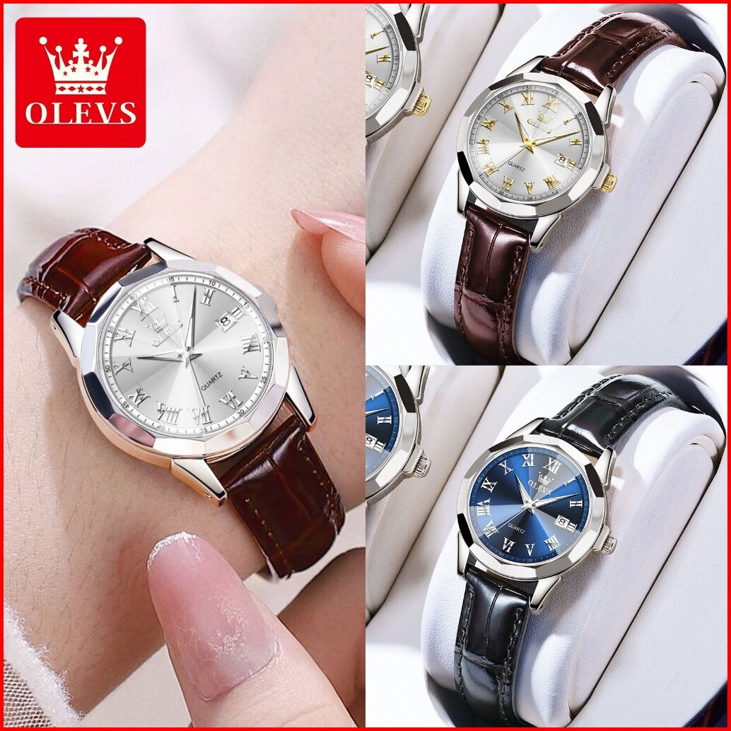 Olevs Jam Tangan Wanita Kulit Original Analog Anti Air Fashion Korea Kecil Terbaru Quartz Women