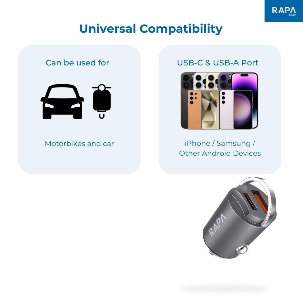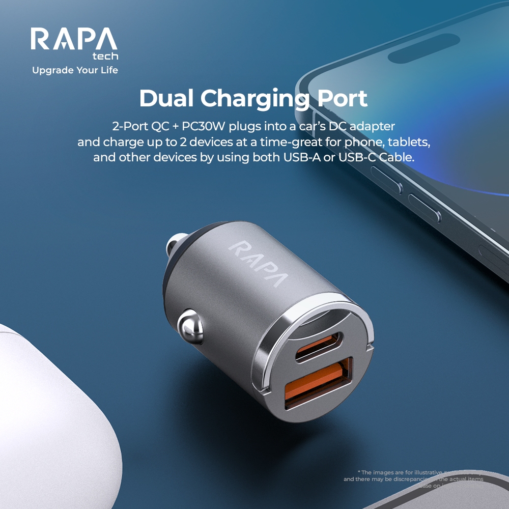 Car Charger RAPAtech DRIVE I Mobil Dual Port Fast Charging 30W MB1020