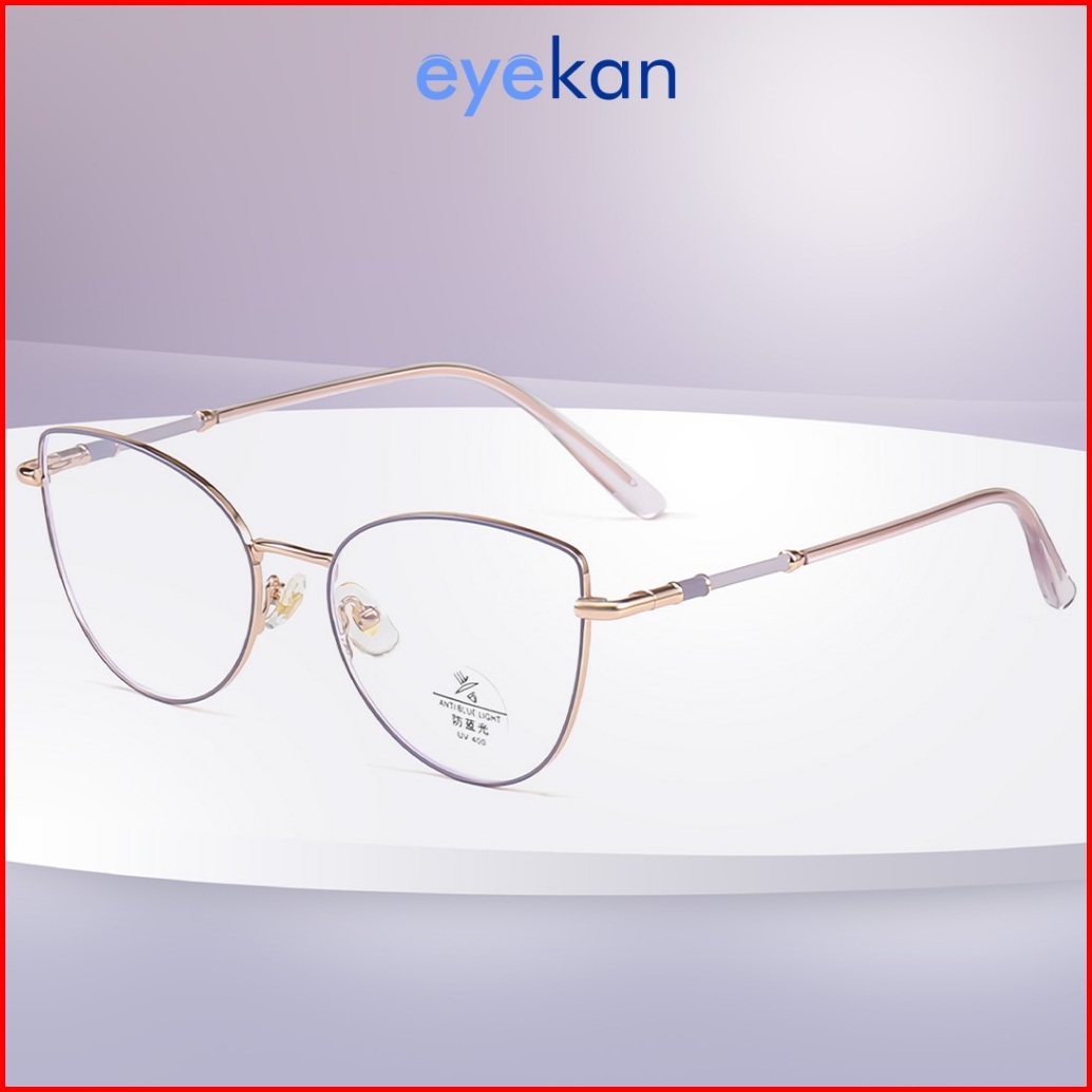 Eyekan Kacamata Cat Eye Anti Radiasi Photocromic Bluecromic Minus Bahan Metal Anti Blueray Fashion Wanita F93029