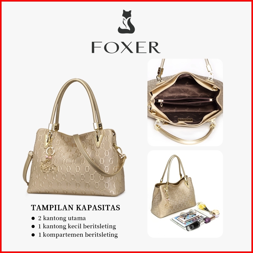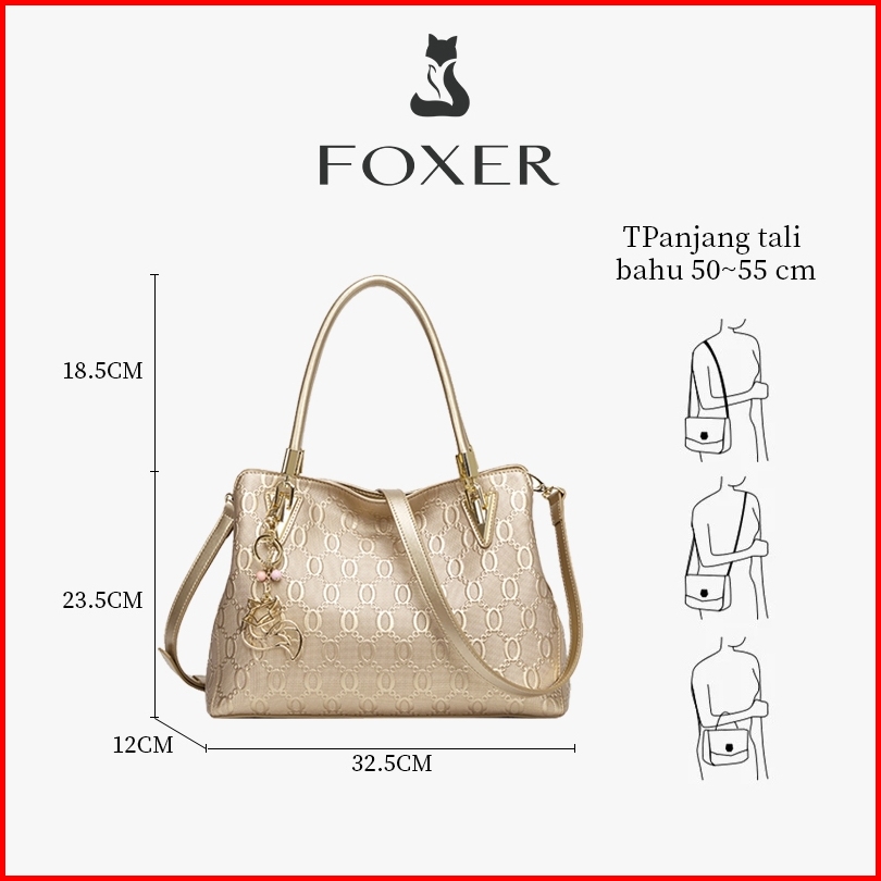 Foxer Tas Tangan Kulit Asli Wanita Tas Bahu Mewah Tas Selempang Berkapasitas Besar