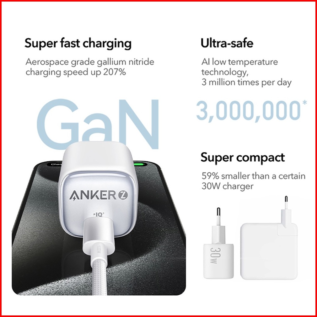 Anker 30w Wall Charger Adaptor Bundling Gan Usb Type C Mfi Fast Charging Pd For Iphone 17 16 15 14 13 Samsung Ice-cooled