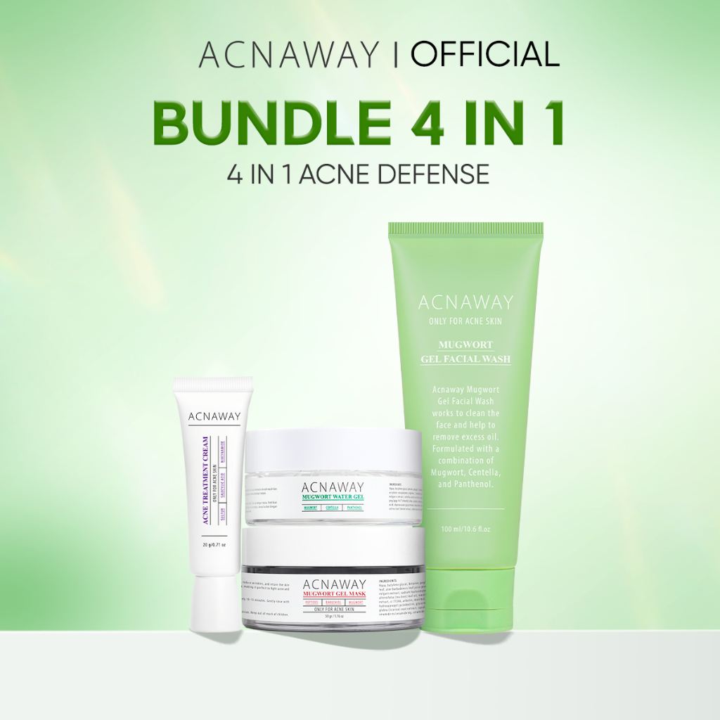 Bundle 4in1 Acne Care Mugwort Series Acnaway Facial Wash Moist Cream Spot Mask