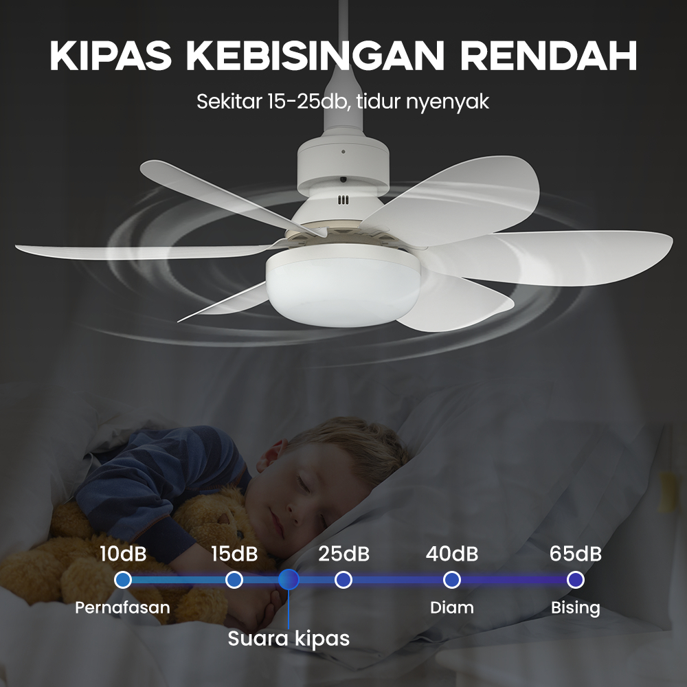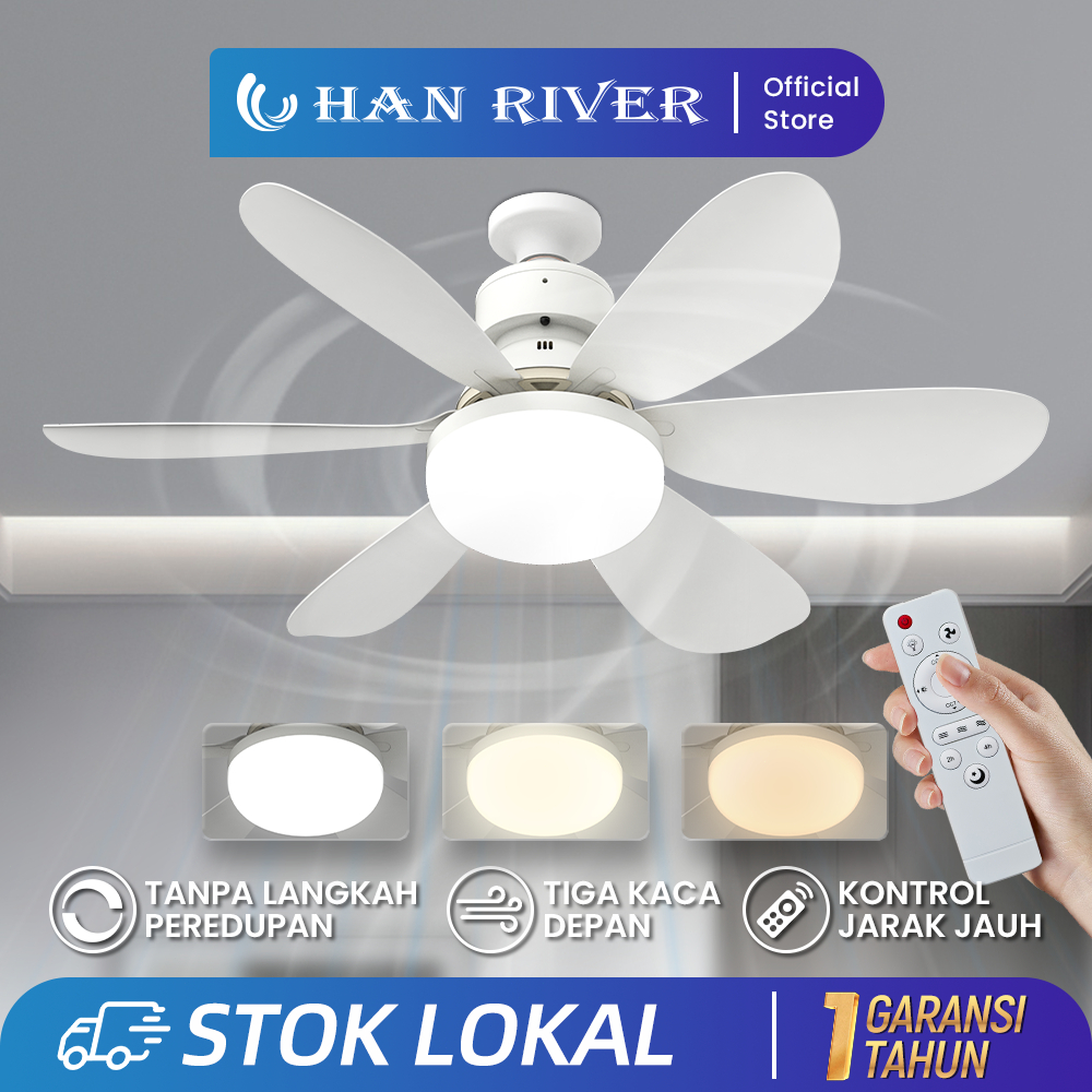 Kipas Angin Plafon 52cm, 40w, 2in1 Lampu Led, Peredupan, Remote Han River Kipas Plafon