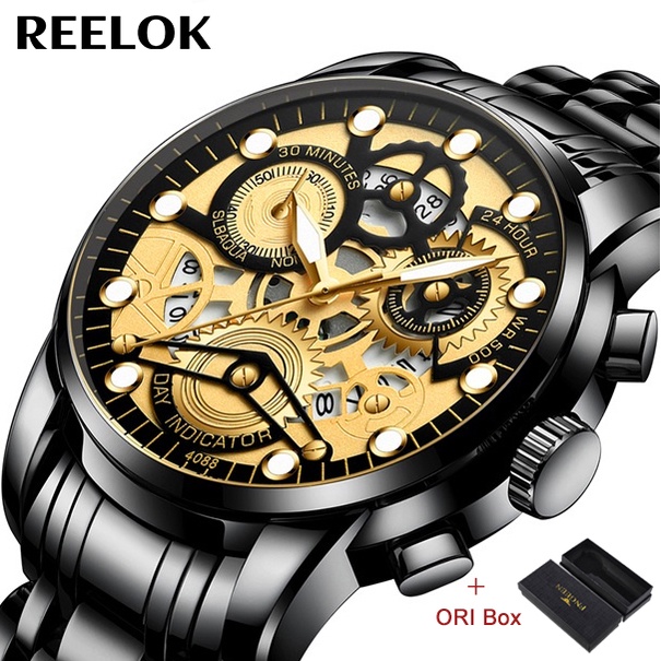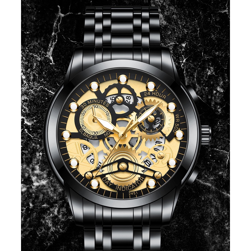 Jam Tangan Pria Fngeen 4088 Original Anti Air Luxury Stainless Steel Berongga Ukiran Quartz