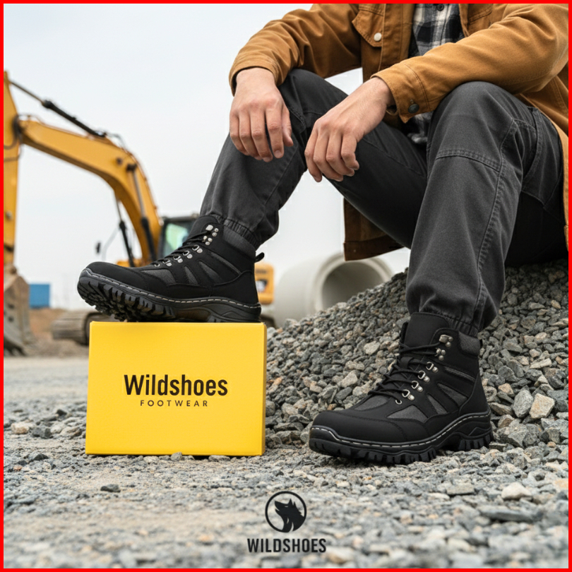 Sepatu Safety Pria Boots - Shoes Safety Ujung Besi - Sepatu Pria Boot Outdoor Tracking Adventure - Wildshoes