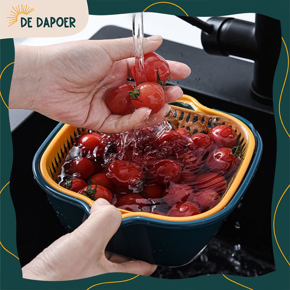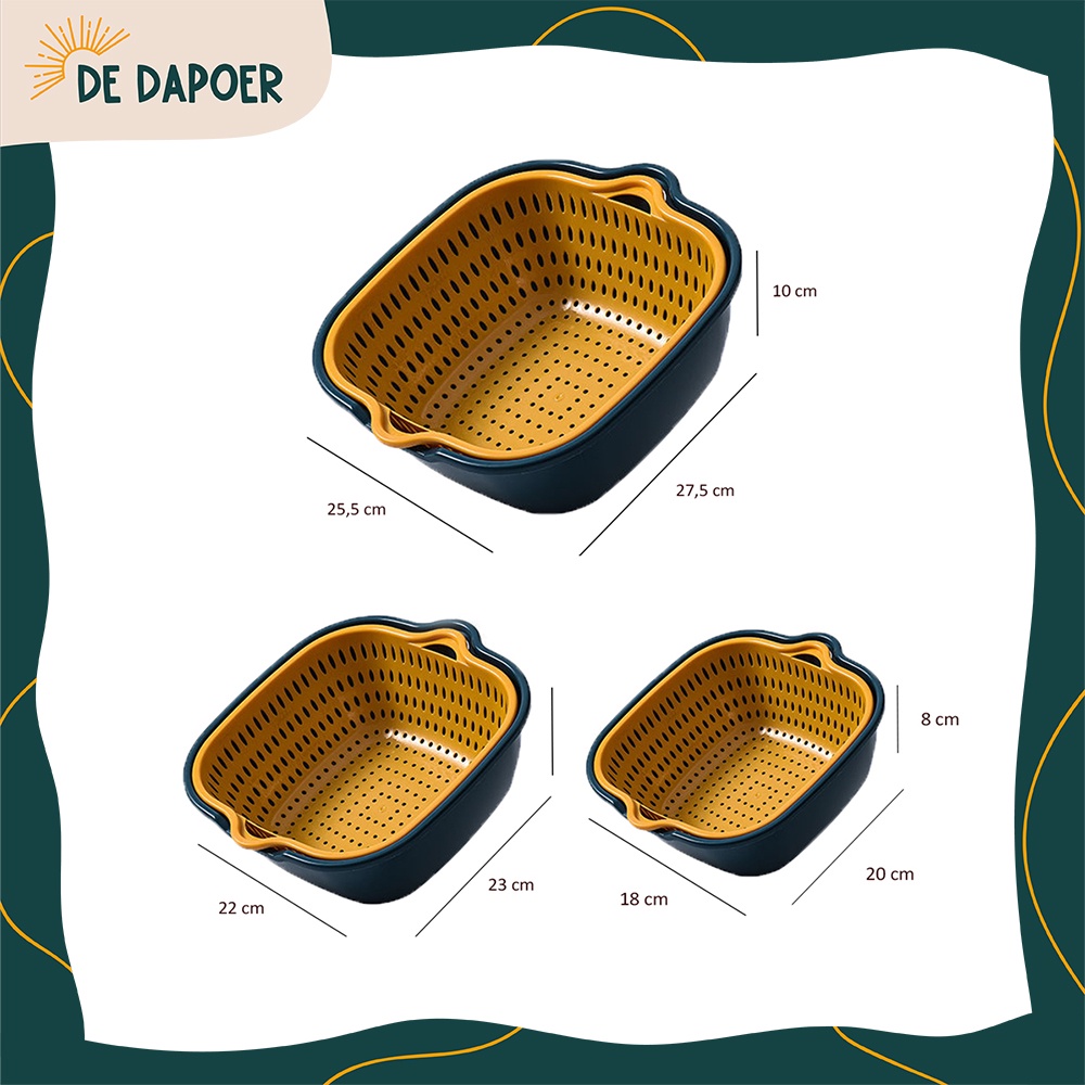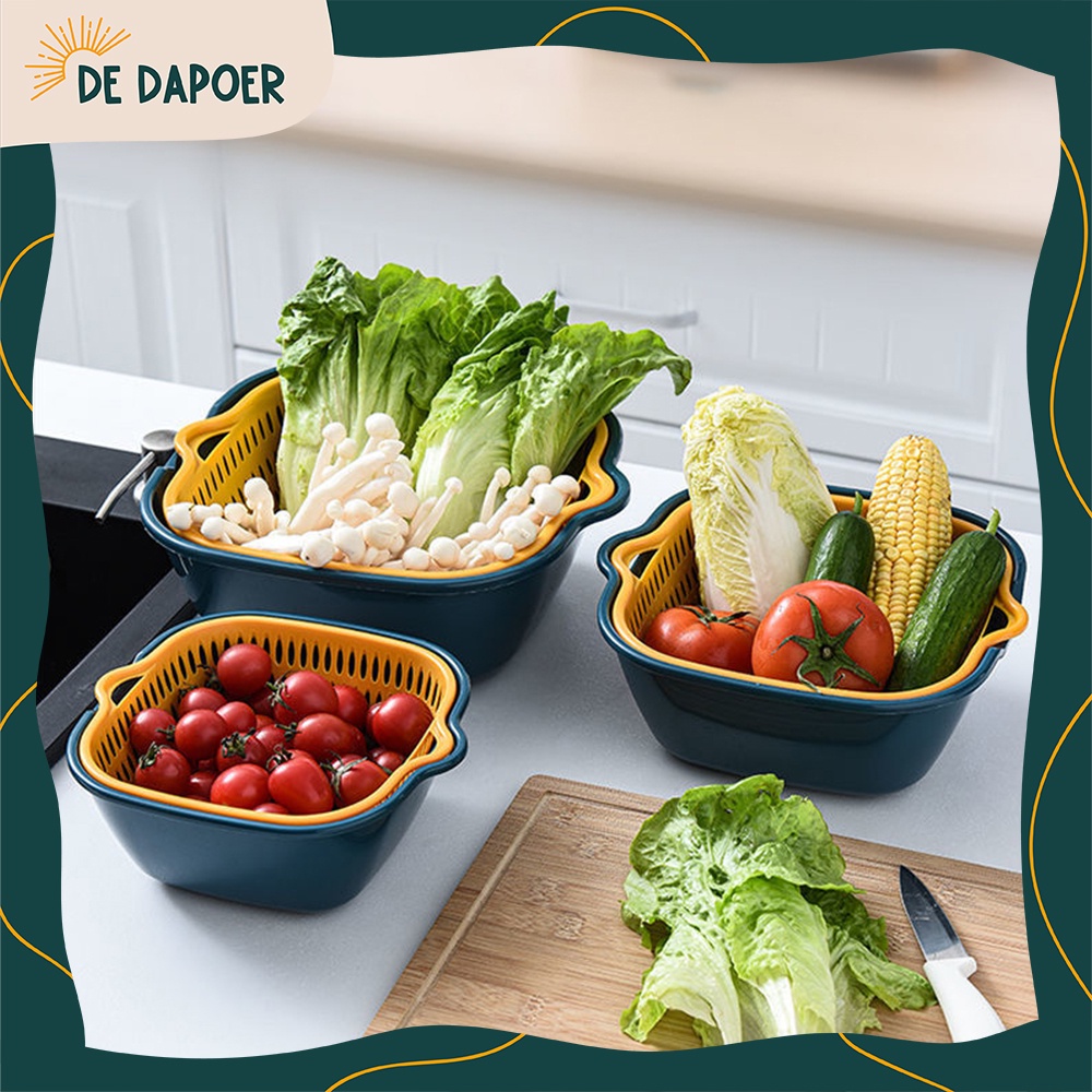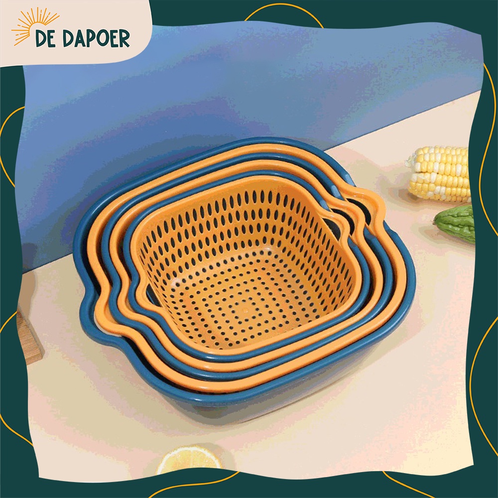 Baskom Plastik 2in1 Tempat Cuci Saringan Pengering Buah Sayur Serbaguna Estetik