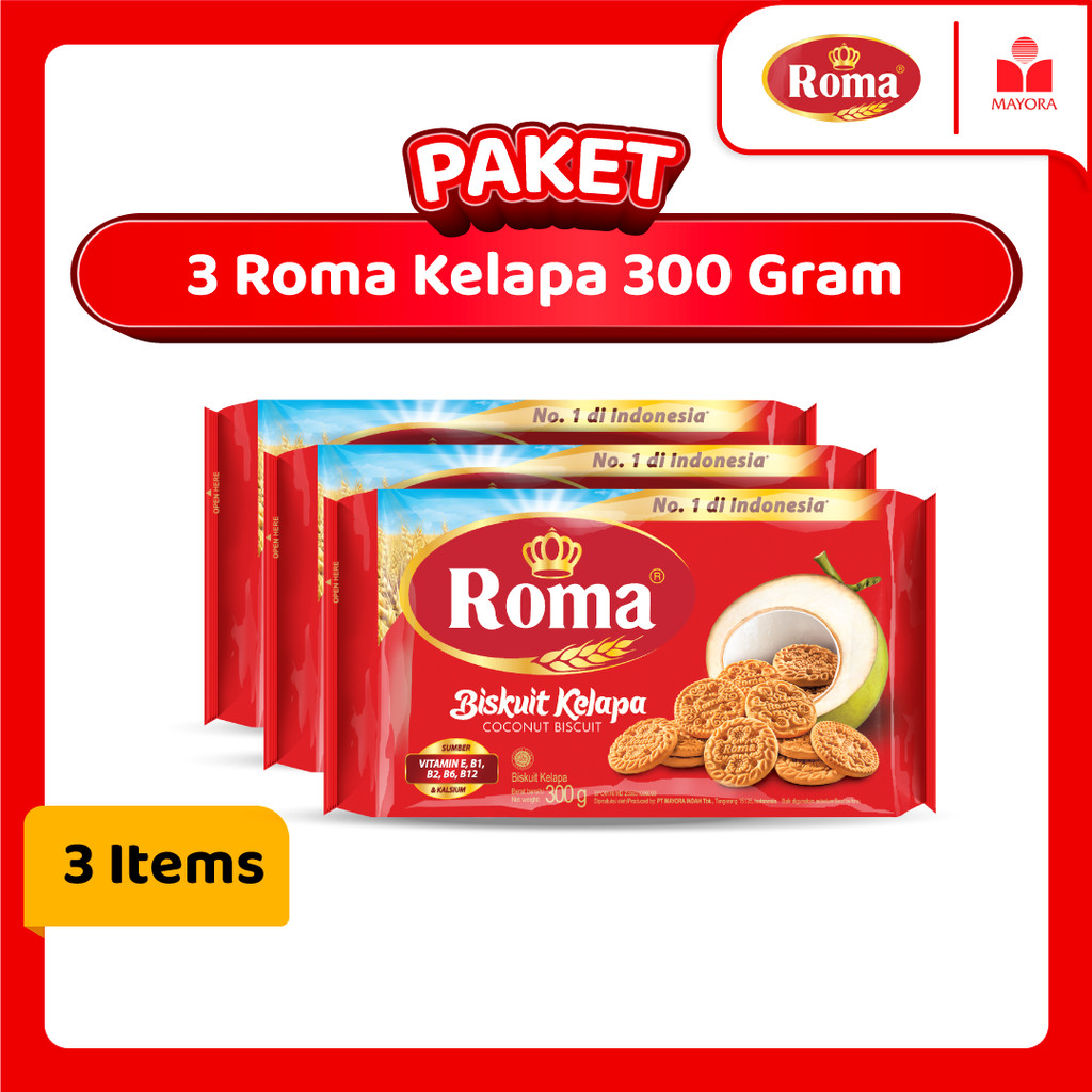 Biskuit Roma Kelapa Paket 3 300Gr Gurih Renyah Legendaris