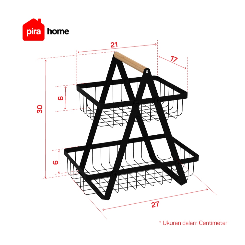 Keranjang Dapur Pira Home Kawa Basket Rak Buah Bumbu Dapur Besi Dua Susun