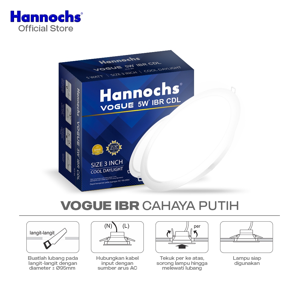 Downlight Led Vogue Hannochs 5W Ibr Isi 4Pcs Cahaya Putih Plafon Rumah Kantor Hemat Energi