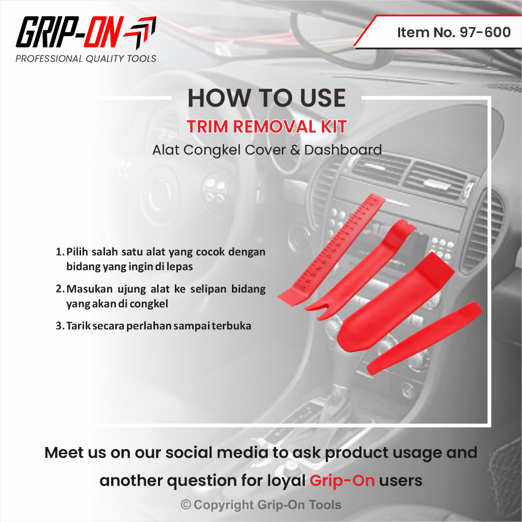 Grip-On Trim Removal Tool Alat Buka Congkel Cover Body Panel Dashboard Mobil