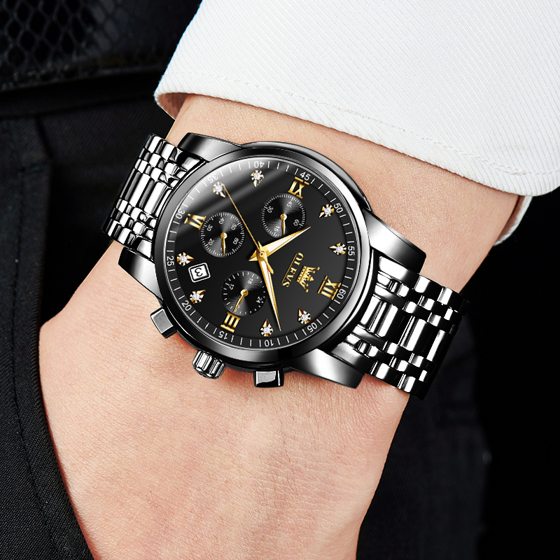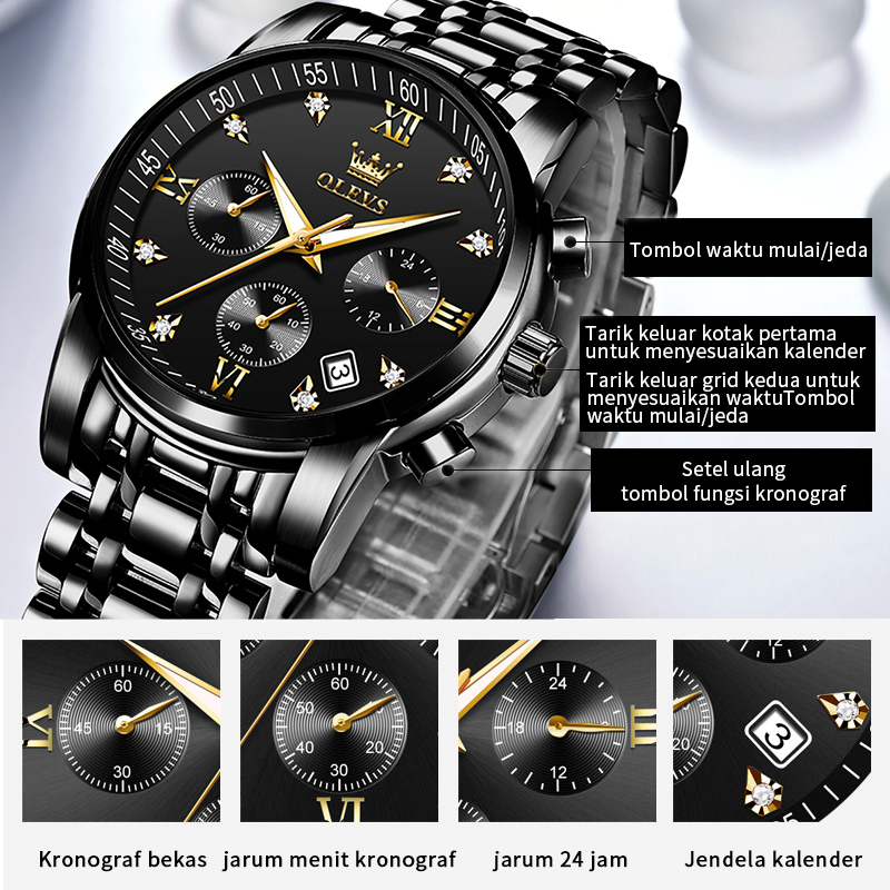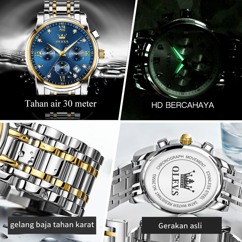 Jam Tangan Pria Olevs Original Anti Air Tahan Led Sport Analog Chronograph Stainless Steel