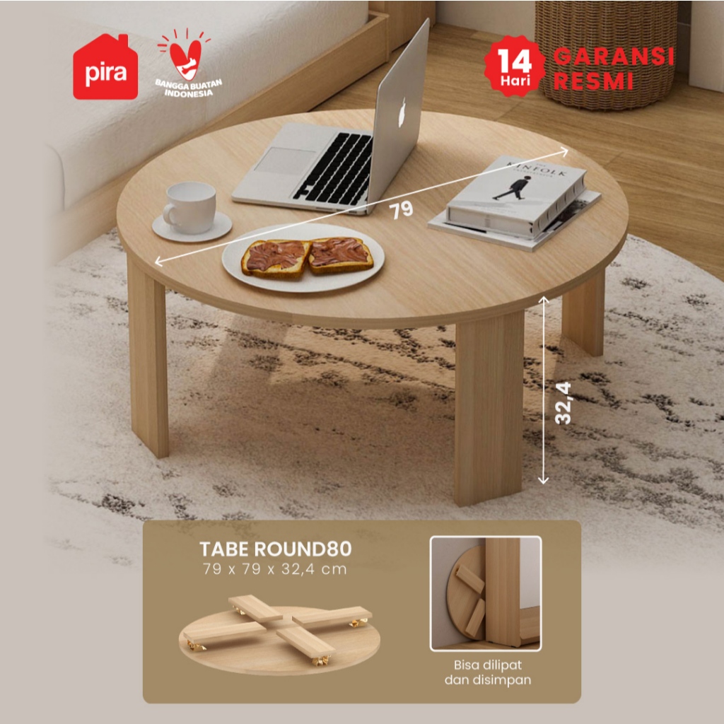 Meja Tamu Pira Tabe Round80 Meja Lipat Lesehan Serbaguna