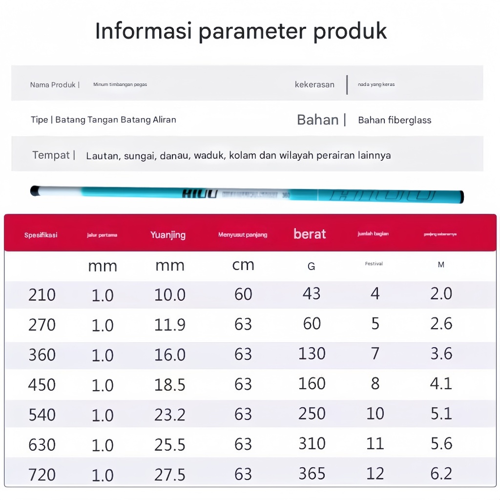 Joran Tegek Hiuu Batik Langit Biru 210 270 360 450Cm Kualitas Tinggi Teleskopik Pancing Super Ringan