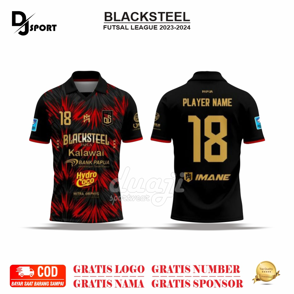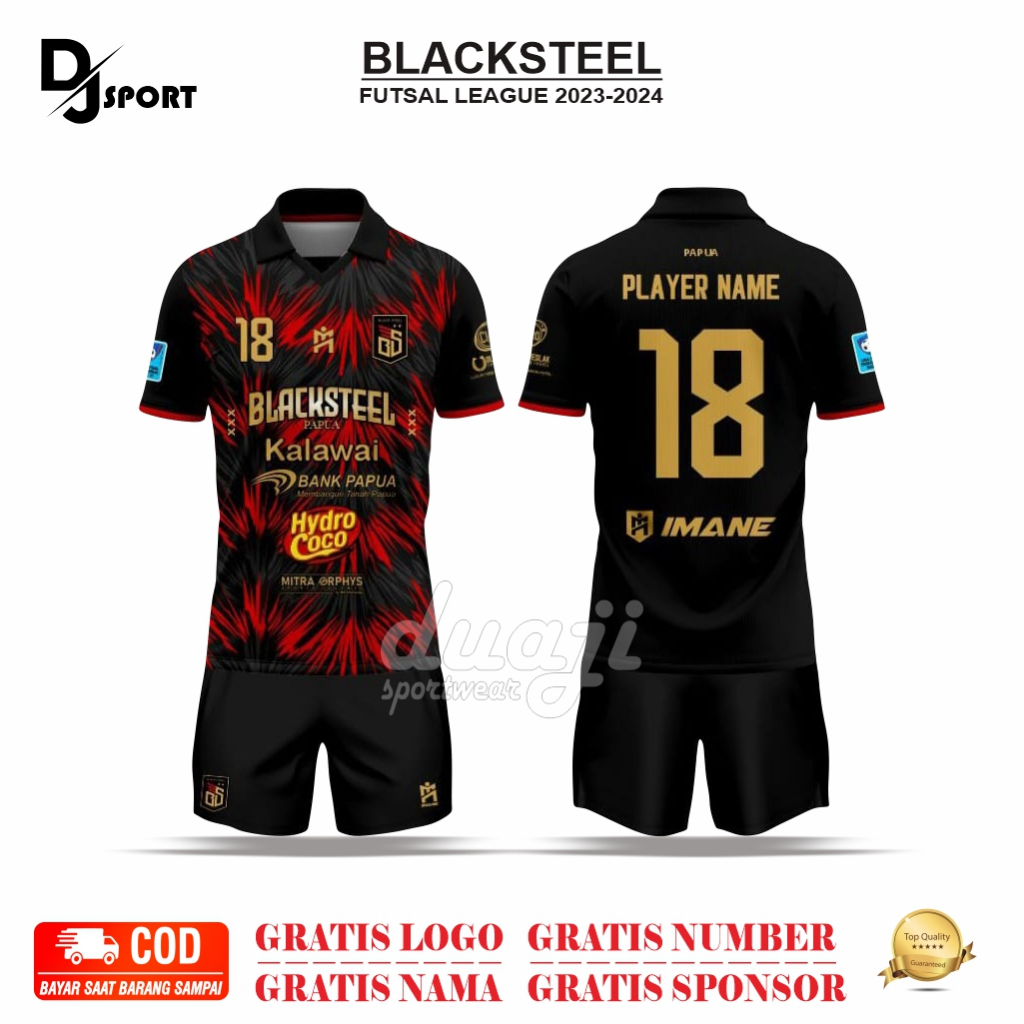 JERSEY FUTSAL BOLA BLACKSTEEL HOME 2023-2024 TERBARU FULL PRINTING PREMIUM GRATIS NAMA SIZE ANAK & D3W4SA