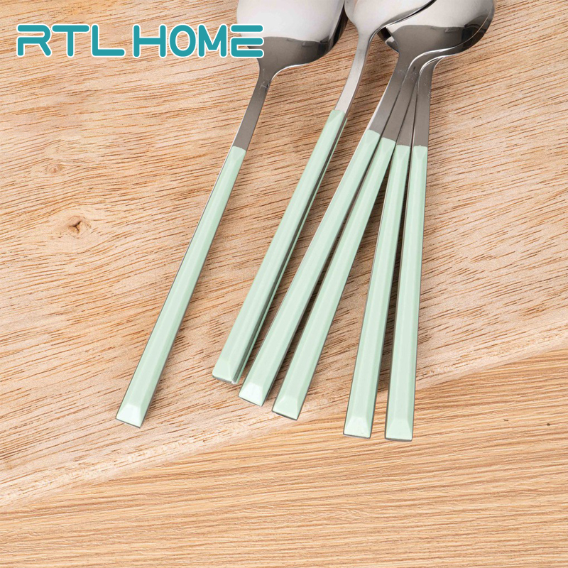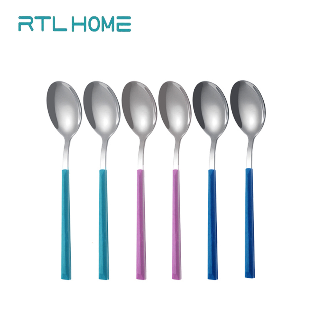 Sendok Makan 6pcs Rtl Tebal Gagang Motif Warna Stainless Steel Berkualitas