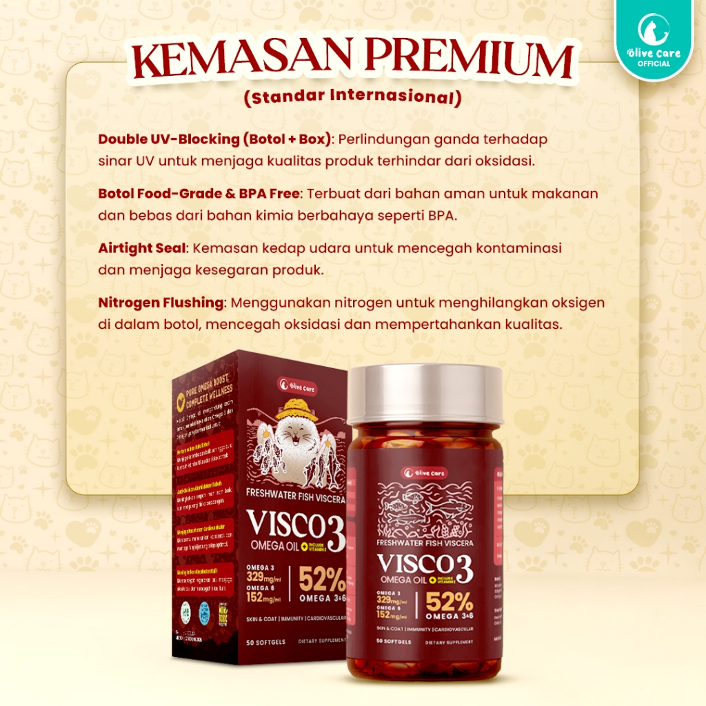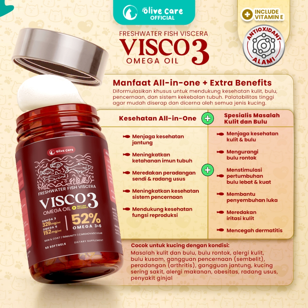 Vitamin Kucing Visco3 Minyak Ikan Kucing Omega 3, 6, 9 Untuk Kulit, Bulu, Dan Imunitas Visco3