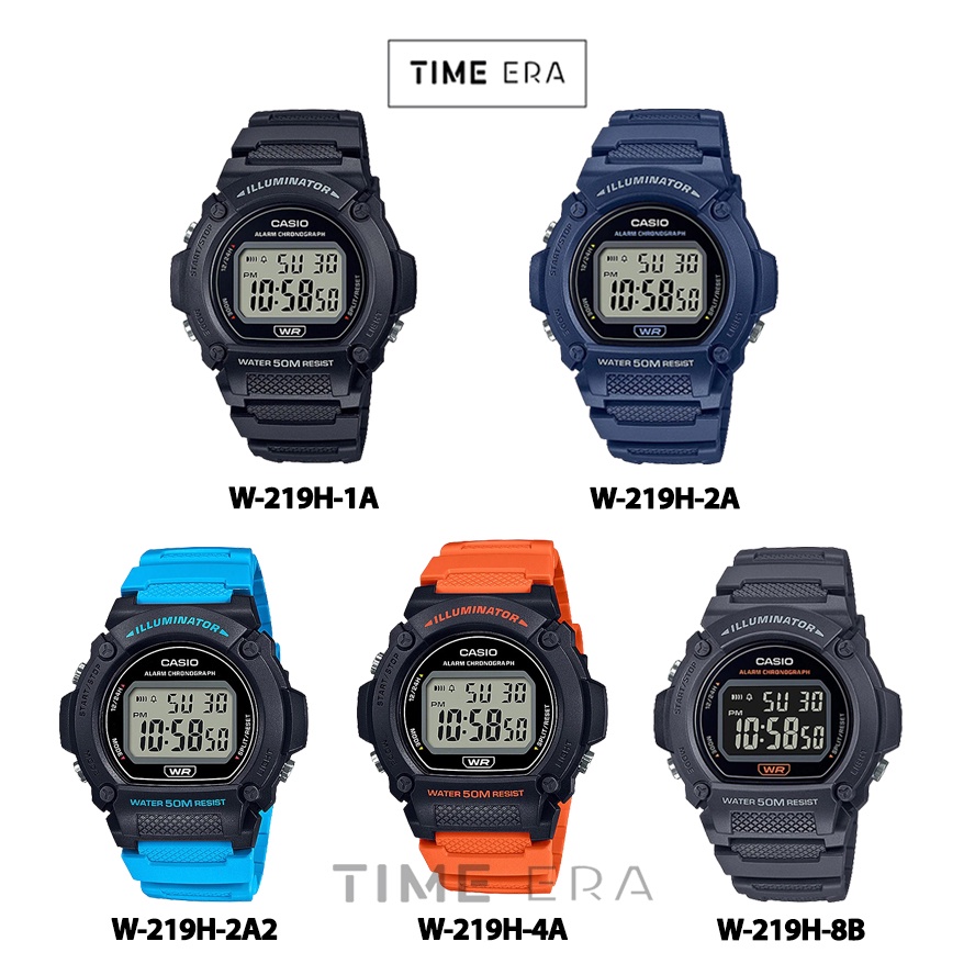 Jam Tangan Pria Casio General W-219H-1A / 8B Digital Karet Hitam Sport