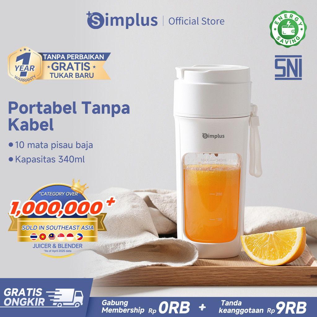 Juicer Portable 340ml, 10 Bilah Baja Tahan Karat, Cordless Simplus Juicer Portable
