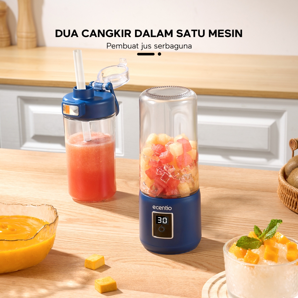 Juicer Portable Led Touchscreen, Dual Cup, 500ml X 2, Food Grade, Anti Tumpah Ecentio Juicer Portable