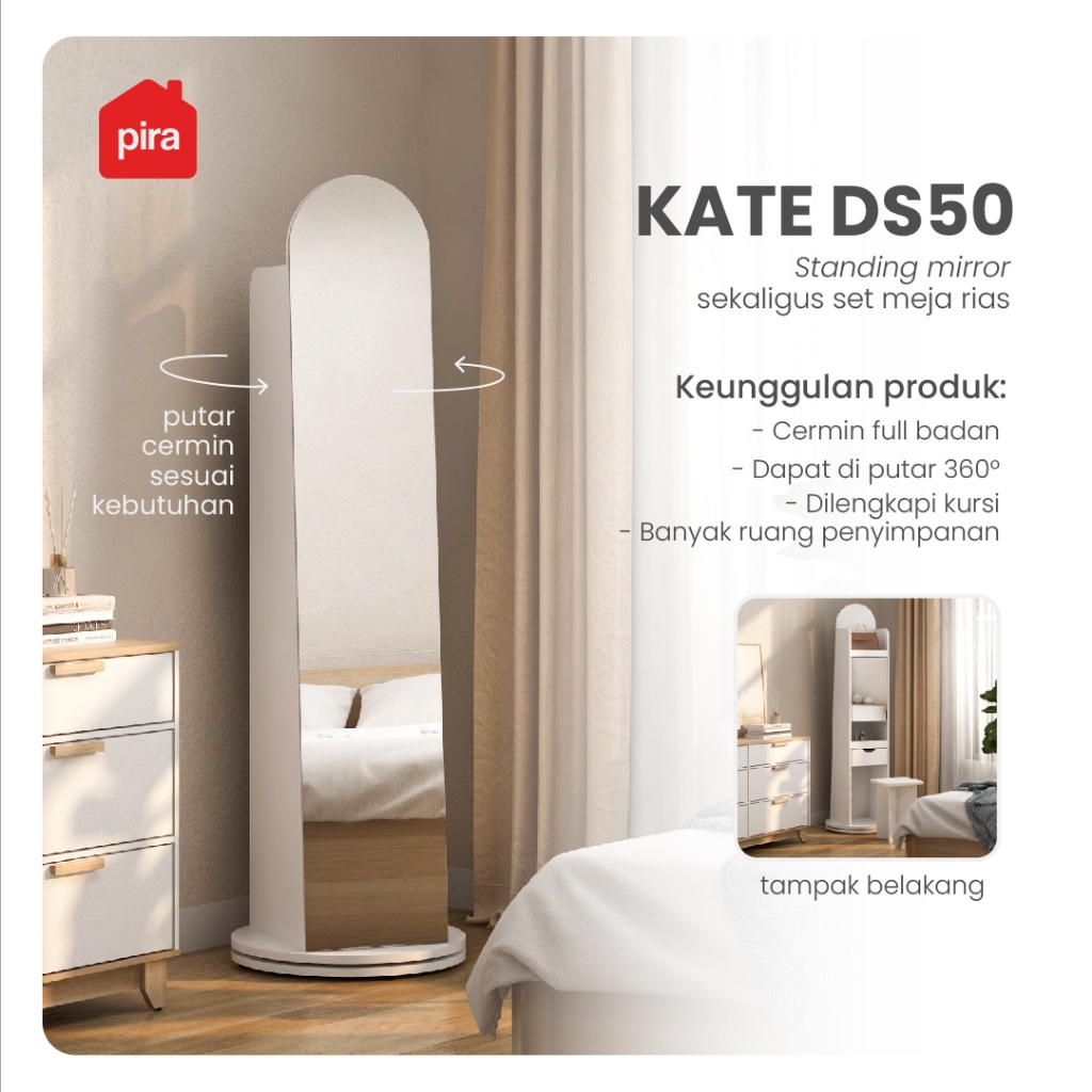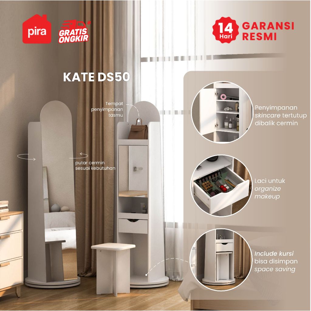 Meja Rias Pira Kate Ds50 Cermin Full Body Set Kursi Minimalis