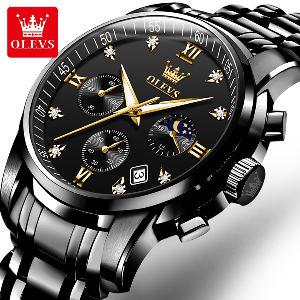 Jam Tangan Pria Olevs Anti Air Original Stainless Steel Terbaru Mewah 2025 Chronograph Multifungsi 2858