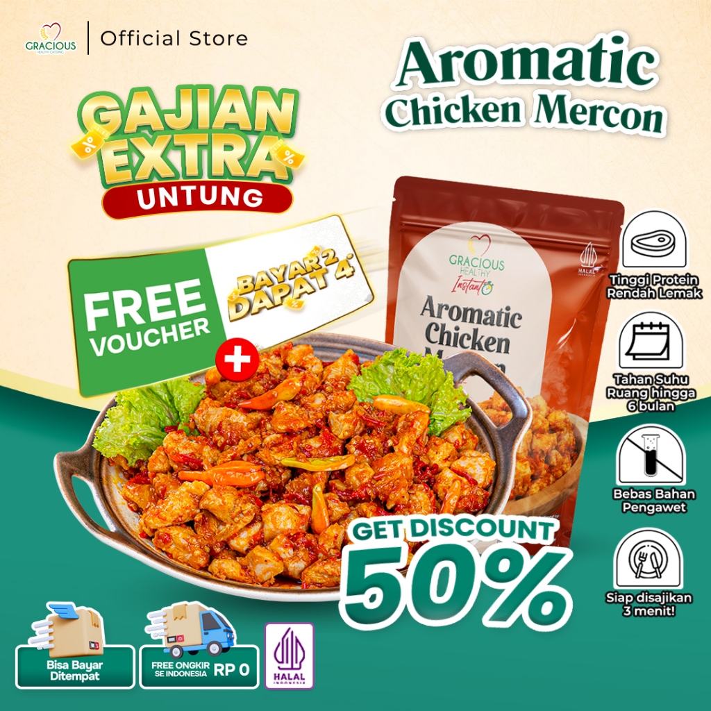 Makanan Instant Gracious Aromatic Chicken Mercon Sopan Protein 56gr Siap Saji Sehat