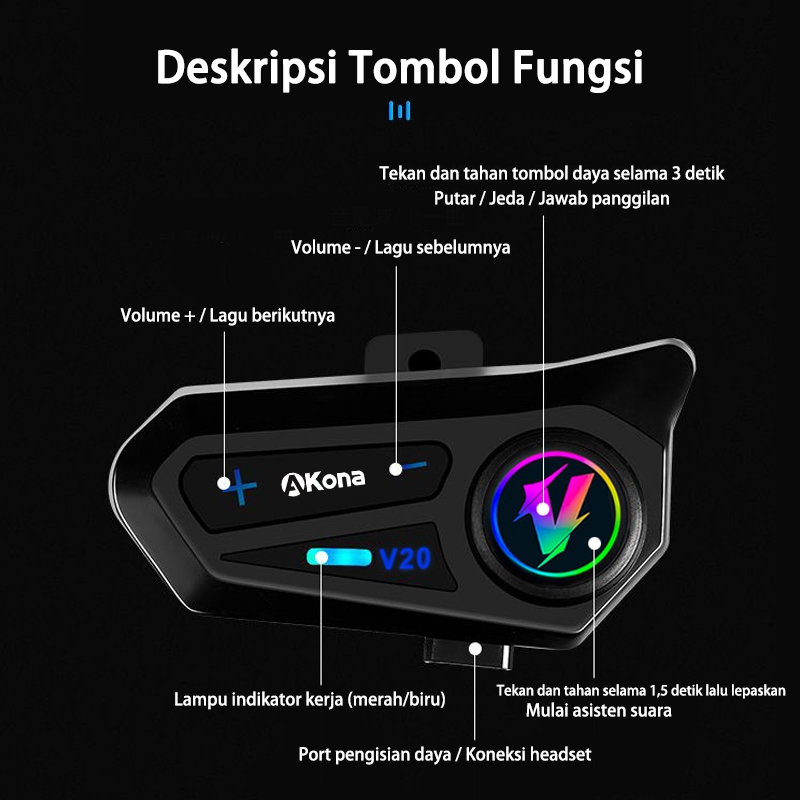 Intercom Helm Bluetooth, Hands Free, Ipx7, Tahan Air, Headset Helm Akona Intercom Helm