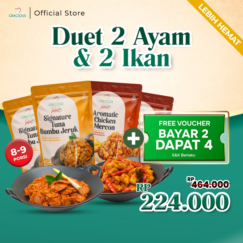 Combo Sehat Gracious Duet 2 Ayam & 2 Ikan Aromatic Chicken Mercon Tuna Bumbu Daun Jeruk Sehat Siap Saji