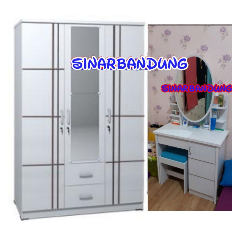 Kamar Set Lemari Pakaian Putih Kaca Panjang Meja Rias Modern Rumah