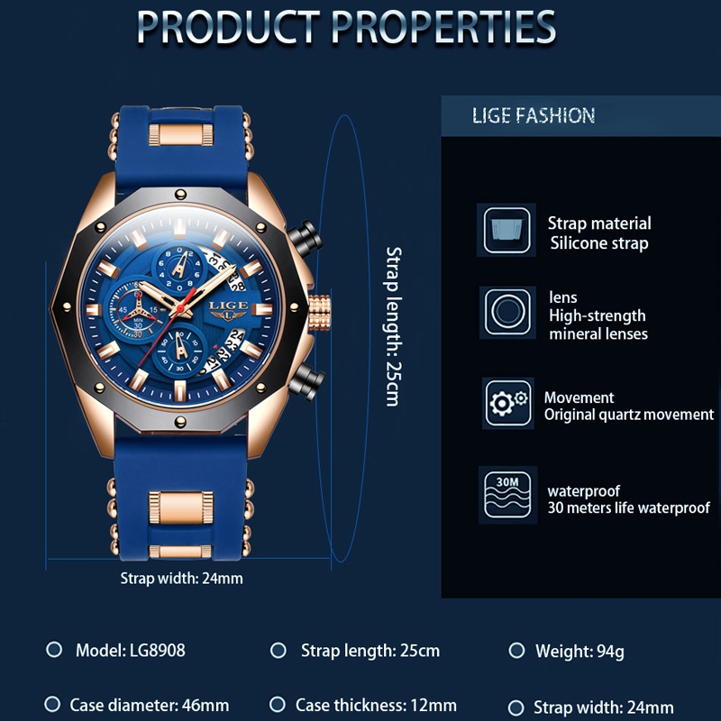 Jam Tangan Pria Lige Original Fashion Kronograf Aktif Multi Fungsi Anti Air + Kotak