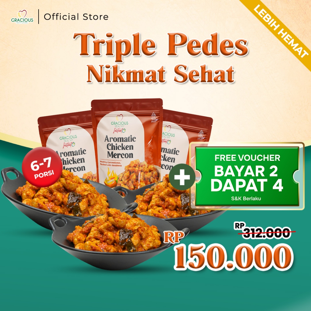 Makanan Sehat Gracious Triple Pedas Nikmat Sehat 3 Pcs Aromatic Chicken Mercon Pedas Siap Saji