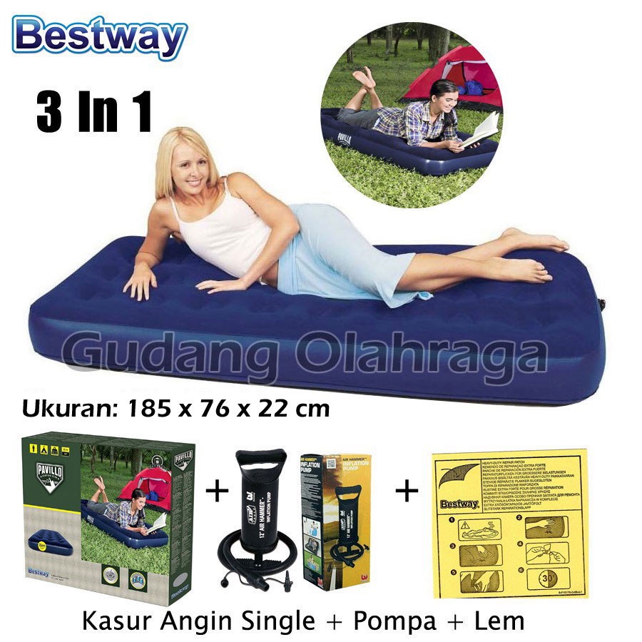 Kasur Angin Bestway 67000 Paket Single Pompa & Lem 1 Lembar Air Bed Praktis