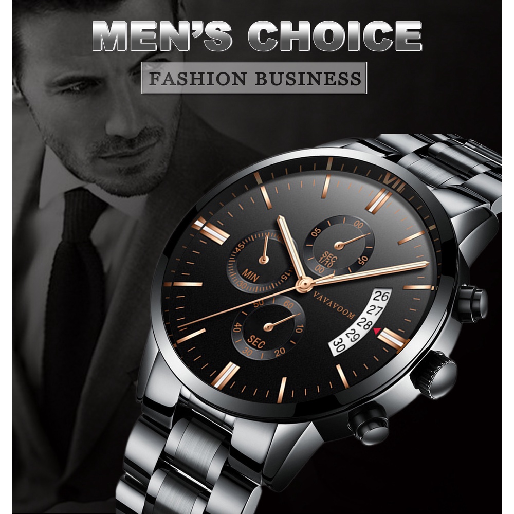 Jam Tangan Pria Va Va Voom 214 Luxury Stainless Steel Analog Quartz Anti Air Free Box Baterai Cadangan