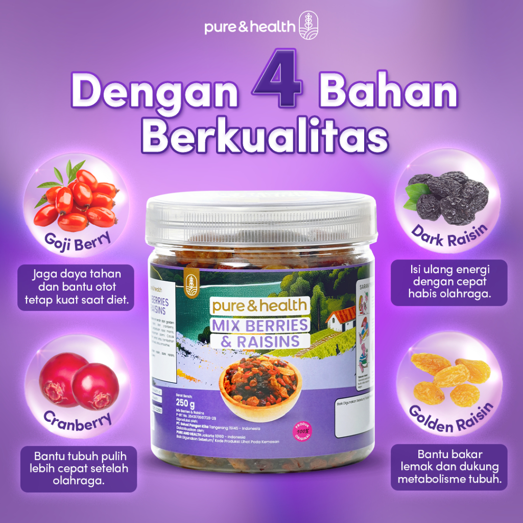 Mix Berry and Raisin 250 gr Pure and Health Camilan Diet Sehat untuk Topping Muesli Granola